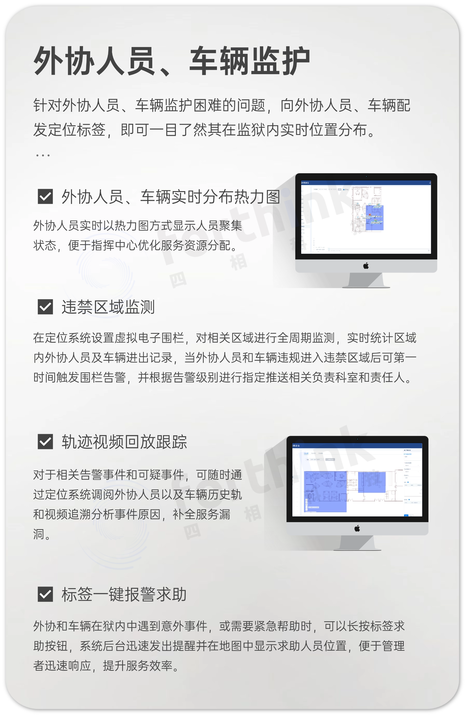 為提高監(jiān)區(qū)管理工作的安防水平,實時分析服刑人員行為和管控外協(xié)人員、車輛,四相科技為某女子監(jiān)獄打造了一套智慧監(jiān)獄位置物聯(lián)網(wǎng)整體解決方案。