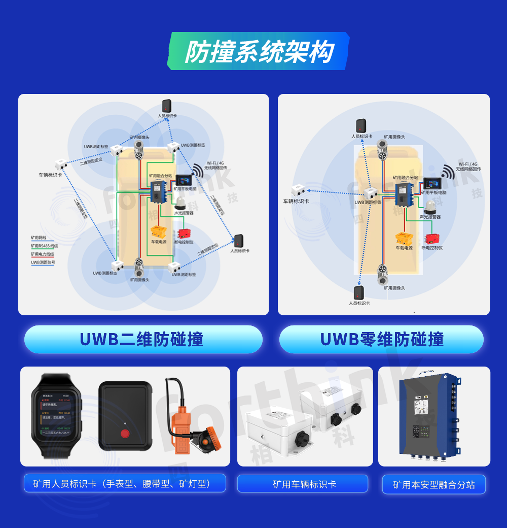 根據(jù)政策要求,四相科技基于UWB高精度定位系統(tǒng),融合紅外感應(yīng)、機(jī)器視覺(jué)識(shí)別等技術(shù)手段,搭配人員/車(chē)輛標(biāo)識(shí)卡、融合定位分站、礦用攝像頭、聲光報(bào)警器等硬件產(chǎn)品,打造礦用電子圍欄人員接近保護(hù)系統(tǒng)解決方案。